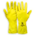 Luva de segurança confeccionada em látex natural, forrada internamente com flocos de algodão, acabamento antiderrapante na palma, face palmar dos dedos, extremidade dos dedos e parte do punho, acabamento do punho em virola.