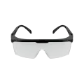 Óculos de proteção, constituídos de arco de material plástico (nylon) com meia-proteção nas bordas, um pino central al?nete e duas fendas nas extremidades da armação utilizadas para o encaixar de visor confeccionado em policarbonato com um furo central para encaixe do pino do arco, apoio nasal e protetor lateral injetado no mesmo material do visor com uma fenda em cada extremidade para o encaixe no arco, hastes do tipo espátula confeccionado do mesmo material que o arco e constituídas de duas peças: semi-haste vazada com uma extremidades presas ao arco por meio de parafuso metálico e outra semi-haste vazada que se encaixa na semi-haste anterior e permite regulagem de tamanho.