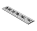 Conjunto grelha linear (permite continuidade)acab.escovado. uso exclusivo p/passagem de pedestres.p/ambientes int.e ex. drenagem de agua de piso e pluvial.reistencia ate 200kg